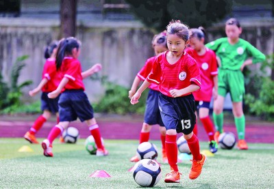 在安徽合肥和平小學第二小學少年宮,孩子們在進行足球訓練。新華社發