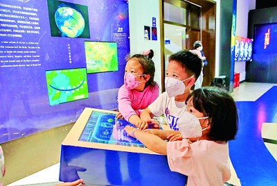 小朋友在北京天文館內參觀。劉憲國攝/光明圖片