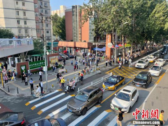 北京市花園橋附近,學生們正在進入學校。 任靖 攝