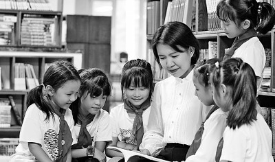 遼寧沈陽市渾南區第九小學教師陳秋穎在陪伴學生閱讀。新華社發