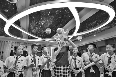 河北邯鄲市邯山區實驗小學的老師給學生講解航空航天知識。李昊攝/光明圖片