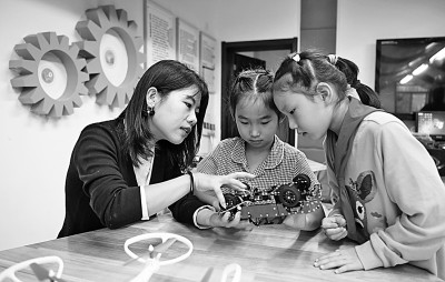 陜西西安市新城區后宰門小學的老師在指導航模興趣小組的學生。新華社發