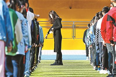 7點左右,史家小學通州分校的校門口已有學生入校,一位身穿黑色長裙、背著卡通帆布包的高個女生一路小跑,急匆匆走進校門。她就是四年級3班的語文老師由瑄。雖然入秋氣溫很有些涼意,但她額頭還是有了一小排細密的汗珠。此刻她正回頭對記者說:“剛把三歲半的兒子送幼兒園了,耽誤了一會兒,得趕緊去教室照看早到的學生!”由老師的聲音由“弱”變“強”,秀目中也放出了一種自信,讓人聯想到時下熱映的《長津湖》里,性格溫儒的伍萬里提槍“上陣”——由瑄此刻已經三步并作兩步走進教學樓四年級3班教室。的確,這位年輕教師今天的“戰斗”就此拉開了序幕。