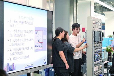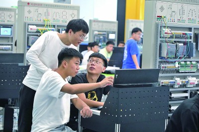 河北工業職業技術大學智能制造學院的學生在動手操作設備。光明圖片