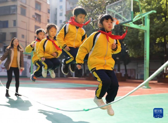 11月10日,衡陽市雁峰區環城南路小學的同學在跳繩。