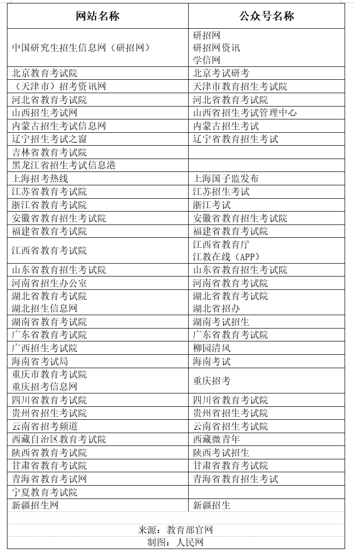 中國研究生招生信息網及31個。▍^、市)教育招生考試機構網站及公眾號等信息匯總
