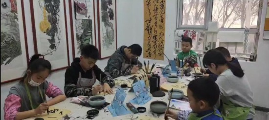 在銀川市一家書畫院,孩子們正在學寫毛筆字和學畫國畫。(受訪者供圖)