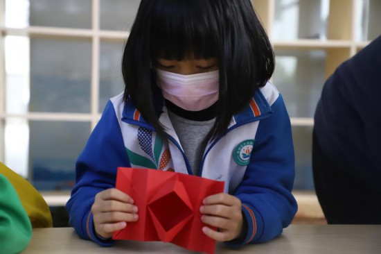 在廣州黃埔區九龍第三小學,學生展示自己的折紙成品。新華社記者 胡拿云 攝