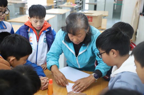 在廣州黃埔區九龍第三小學,老師正在教學生粘貼修復舊書。新華社記者 胡拿云 攝