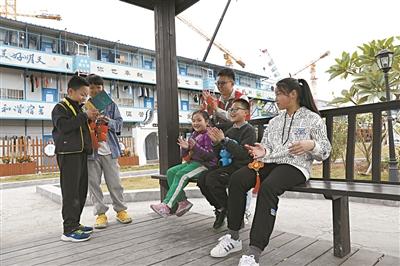 春節期間,許多工友堅守崗位、連續施工,為了能和家人團聚,不少工友將留守老家的孩子接到廣州來過年。孩子們住在項目工友村,和堅守工作崗位的爸爸媽媽一起過春節。
