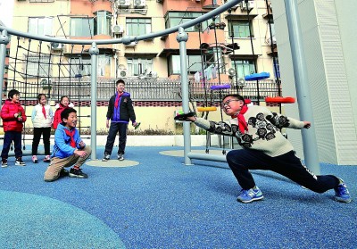 上海市徐匯區凌云街道凌云新村社區,孩子們在一起玩耍。新華社發