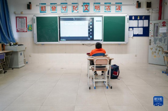 當日,上海市楊泰實驗學校四年級六班的蒲蕓帆照常從學校宿舍醒來,用完早餐,走進教室開始一天的學習生活。與以往不同的是,教室里只有他一名學生。由于留校住宿等原因,蒲蕓帆成了班級里唯一需要在校參與線上學習的學生。據了解,楊泰實驗學校共有十多名學生因各種原因需要留校參與線上學習。學校了解情況后第一時間制定了方案,在遵守防疫政策、嚴格落實疫情防控措施的前提下,安排居家照護存在困難的學生到校參加線上教學。