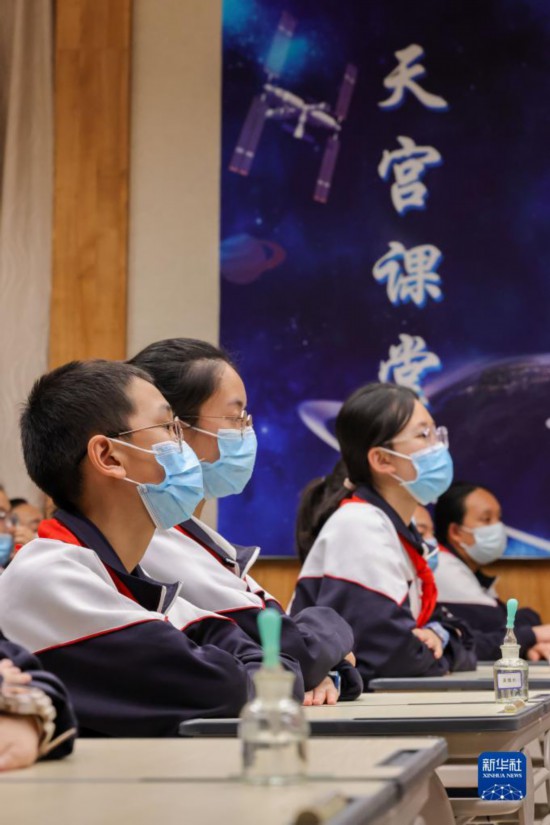 3月23日,在新疆烏魯木齊市第七十中學,學生收看“天宮課堂”第二課。