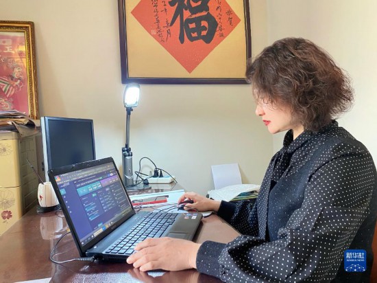 3月27日,沈陽大學的老師查看網絡就業雙選會報名情況。