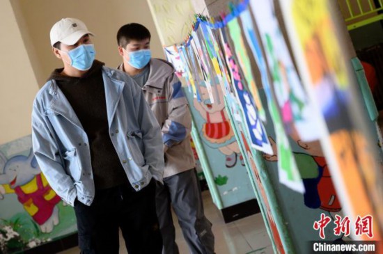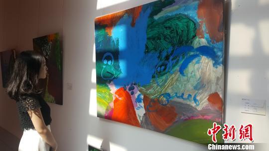 圖為市民觀看自閉癥兒童畫展!£愔矡 攝