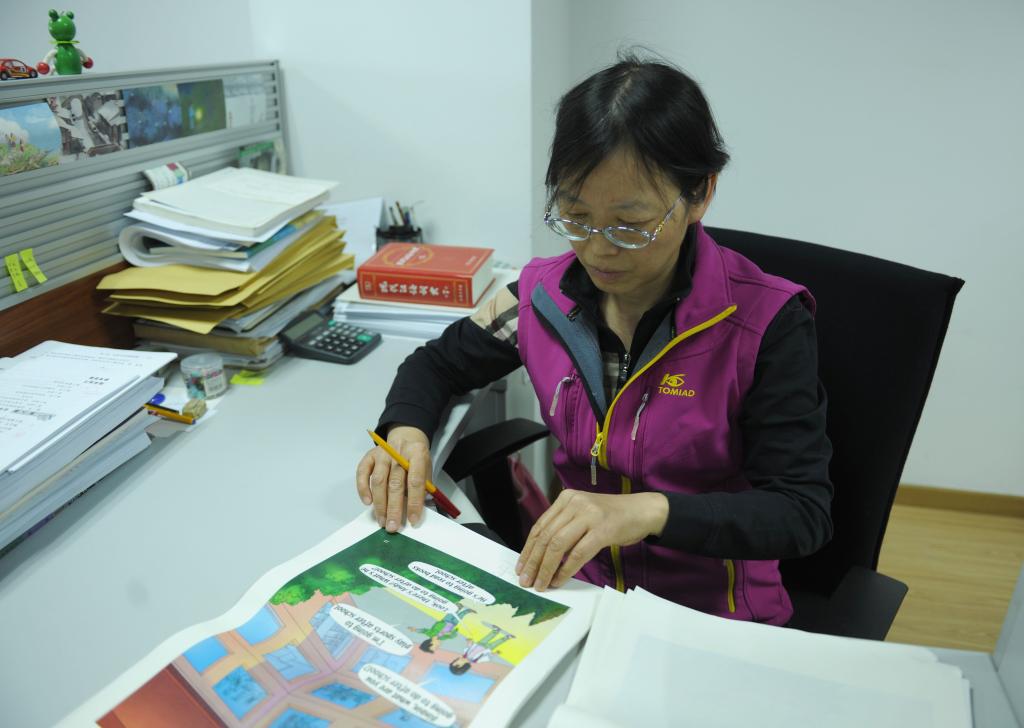 圖為中國盲文出版社編輯在編輯加工大字教科書。(中國盲文出版社供圖)