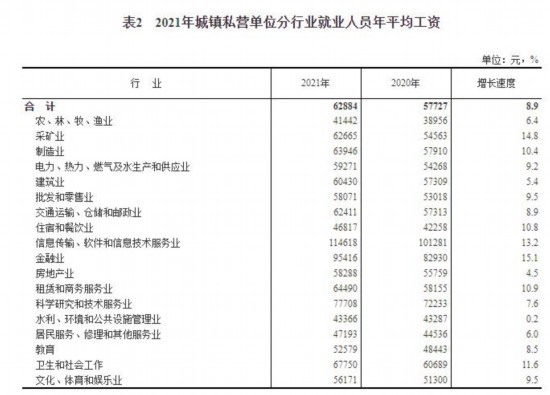 2021年城鎮私營單位分行業就業人員年平均工資。