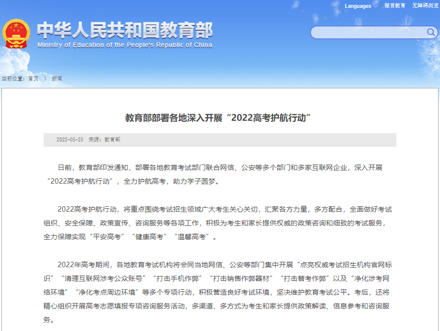 2022高考護航行動,將重點圍繞考試招生領域廣大考生關心關切,匯聚各方力量,多方配合,全面做好考試組織、安全保障、政策宣傳、咨詢服務等各項工作,積極為考生和家長提供權威的政策咨詢和細致的考試服務,全力保障實現“平安高考”“健康高考”“溫馨高考”。