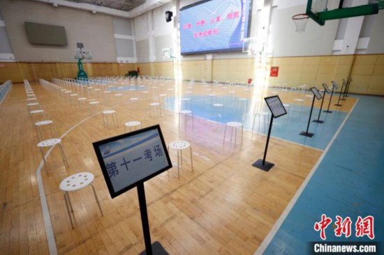 圖為北京市東直門中學高考考點內的候考區!≈行律缬浾 富田 攝