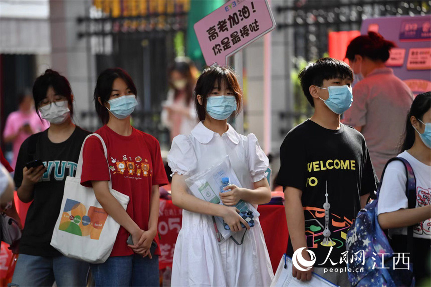 考生們有序排隊,準備進入考場。 人民網 時雨攝
