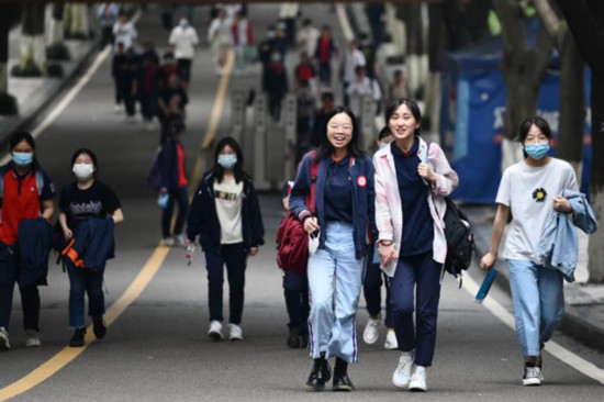 6月7日,重慶一中考點,高考考生走出考場。鄒樂攝