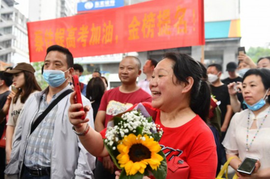 6月7日,重慶一中考點,考生家長在場外加油鼓勁。鄒樂攝