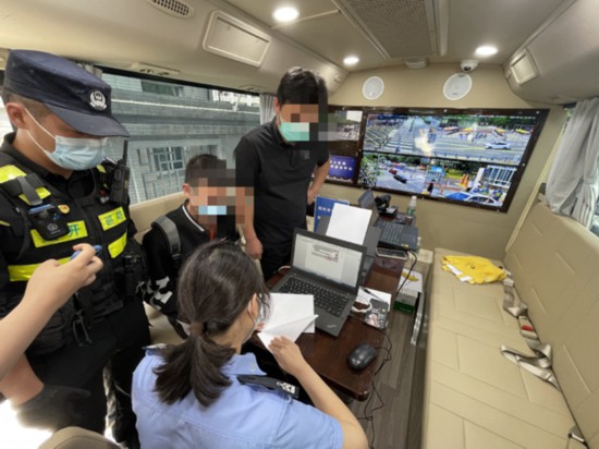 民警在移動防控方舟進行臨時身份證明辦理工作。無錫市公安局供圖
