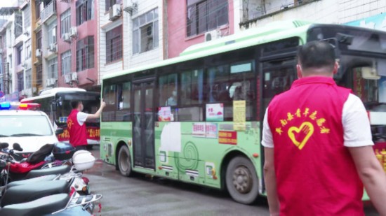 貴港市平南縣青年志愿者為考生服務。平南縣融媒體中心供圖