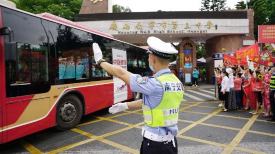 此外,廣西繼續堅持以考生為本的原則,細致做好服務考生各項工作,共為114名殘疾考生提供了合理便利服務。高考首日,南寧交警全員上崗,共出動警力1700余人次、警車265輛次,組織25支應急小分隊,規劃設置65條護考線路,為考生提供應急救助服務24次。防城港市開展“愛心送考”行動,并為考生免費提供雨具和餐食。柳州市派出公安交警、治安、巡邏、特警、反恐等支隊公安干警參與高考安保工作,確?忌涂键c安全。