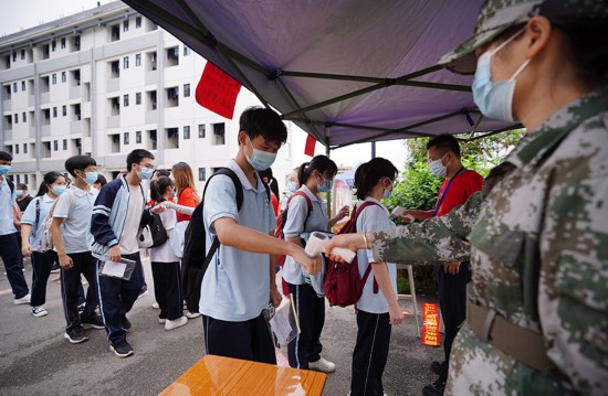 根據防疫要求,今年廣西考生(及共同生活居住人員)從備考期間至考試結束,都要做好每日體溫測量和健康監測,并按要求完成“三天兩檢”。進入考點時,考生及相關考務人員還需提交《個人健康情況篩查表》和核酸陰性證明等。如果考生出現體溫異常,各考點防疫小組將對考生情況進行綜合研判,考點還給特殊考生安排了醫療室、防疫專用通道以及相關備用隔離考場,供健康監測情況異常的考生參加考試。