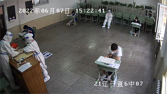考務人員在“特殊”考場為考生監考。圖為監控視頻截圖