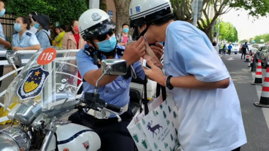 人民網濟南6月8日電 “別慌,來得及!”6月7日上午,山東聊城臨清市,一名考生走錯考點,眼看考試馬上就要開始了,臨清交警鐵騎高考服務隊的騎警立即出動,幫考生戴上頭盔,帶著他一路趕往臨清一中考點,用時不到5分鐘,便將考生安全送入考場。