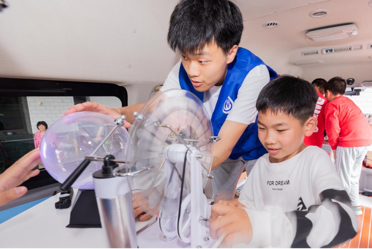 經過精心設計,該校的大學生們將一輛普通車改造成了為小朋友們科普的小天地。車內分設四個區域:科普書柜、實驗DIY區、遠程視頻授課區和作品展示合影區。據悉,這輛不一樣的“城堡”具有可移動、可據點擺放、攜帶有完成整項科普活動所需材料、可搭載定期更新升級的科普實驗器材等特點。