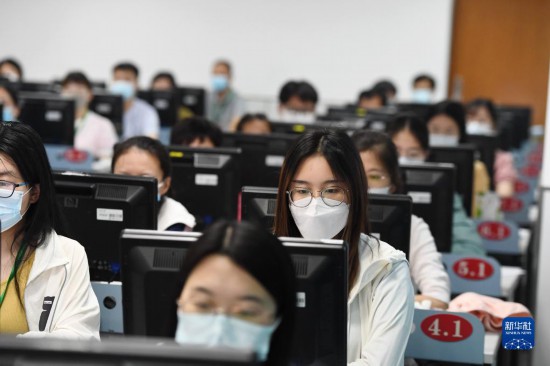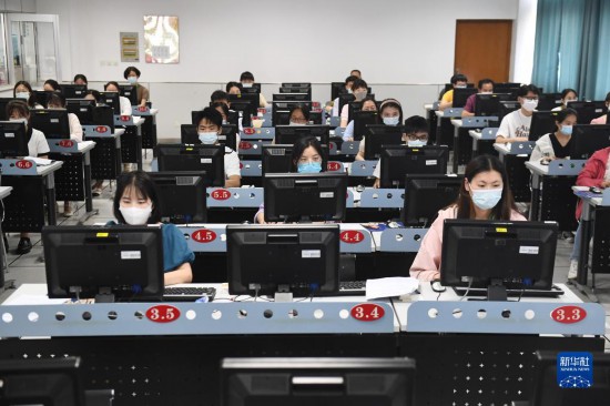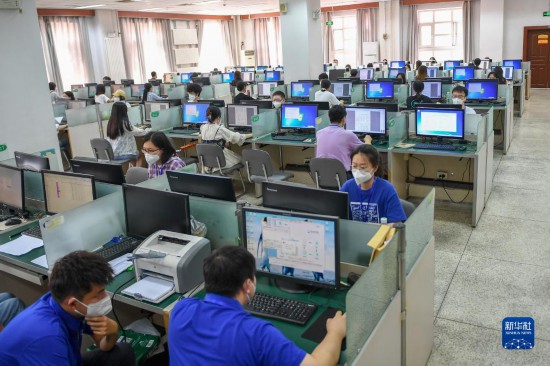 6月14日,在位于吉林長春的東北師范大學高考網上評卷點,工作人員在評卷。據了解,2022年吉林省高考評卷工作全部采用電子掃描、網上評卷方式進行。新華社記者 張楠 攝