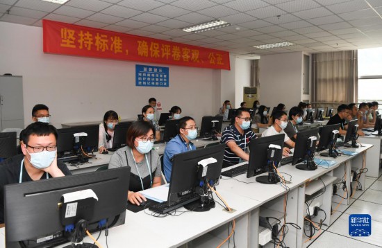 6月14日,在位于吉林長春的東北師范大學高考網上評卷點,工作人員在評卷。新華社記者 張楠 攝