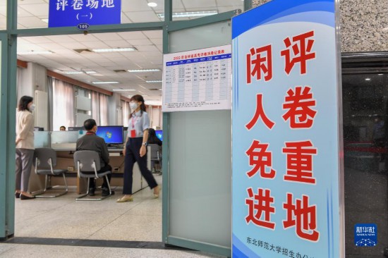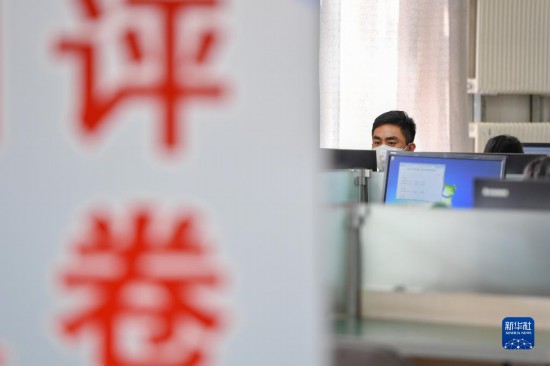 6月14日,評卷教師在位于西南大學的重慶市高考評卷場閱卷。據了解,2022年重慶市參加全國統一高考人數約18.4萬人,試卷數量約110萬份,全市統一選派評卷教師1300余人參加評卷工作。新華社記者 王全超 攝