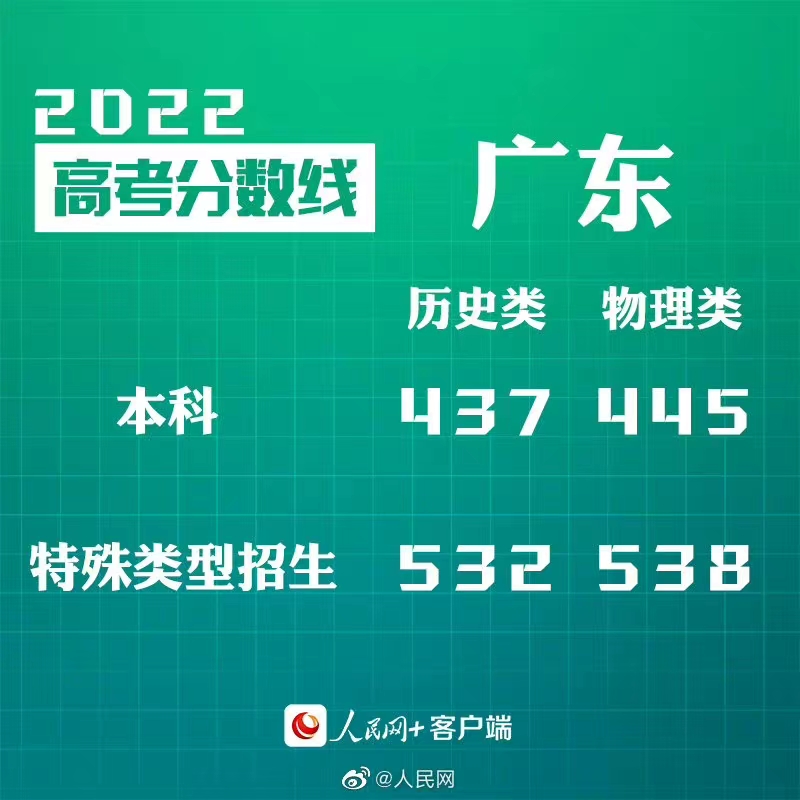 2022廣東高考分數線發布:本科普通類(歷史)437分、普通類(物理)445分