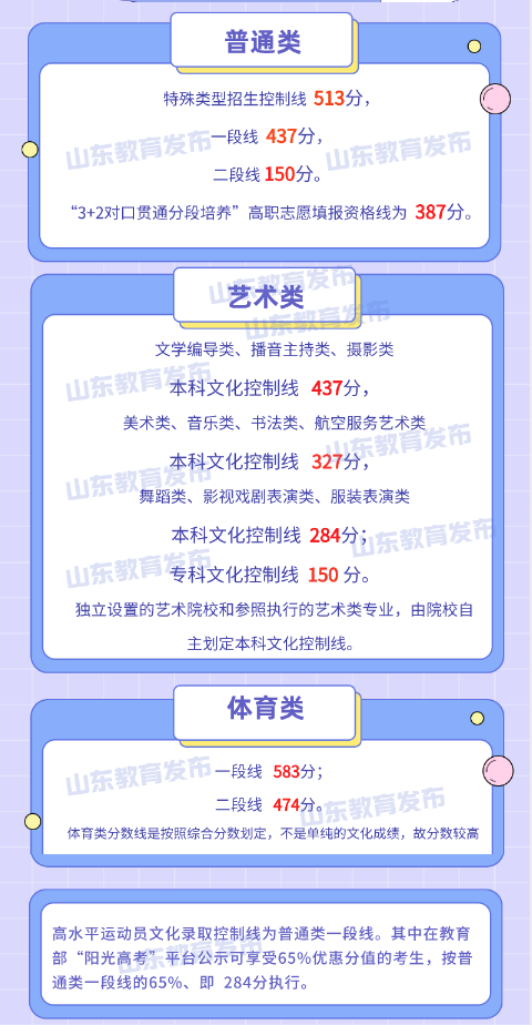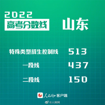 人民網北京6月25日電 (記者李依環)據山東教育考試院消息,2022年山東省普通高考本科各批次錄取最低控制分數線劃定,其中普通本科一段線437分,二段線150分。