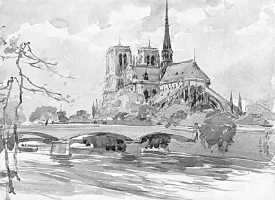 塞納河上遠眺巴黎圣母院 吳良鏞1987年繪