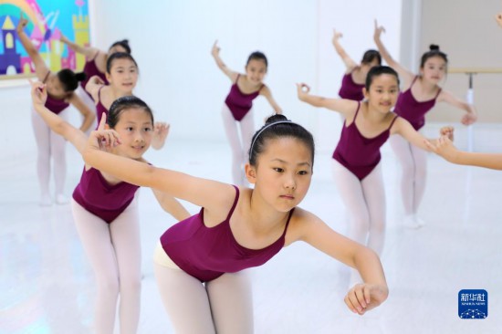 7月12日,山東省東營市東營區文匯街道一舞蹈培訓學校教室里,學生在練習舞蹈動作。