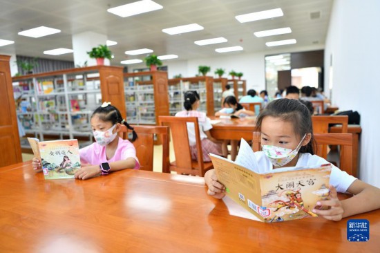 7月12日,在湖北省襄陽市?悼h圖書館少兒閱讀室,孩子們在閱覽圖書。