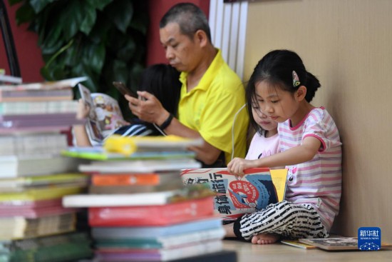 進入暑假,廣西南寧市不少學生來到書店閱讀,享受書香假期。