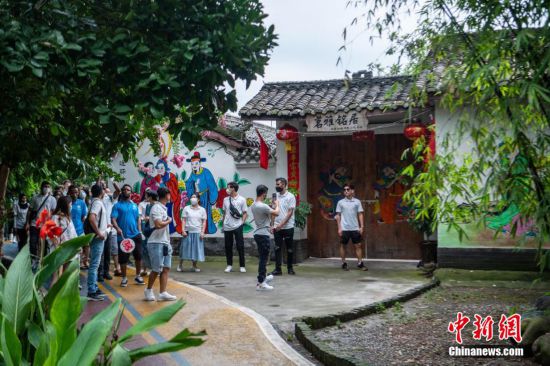 圖為外籍師生行走在綿竹年畫村。 劉忠俊 攝