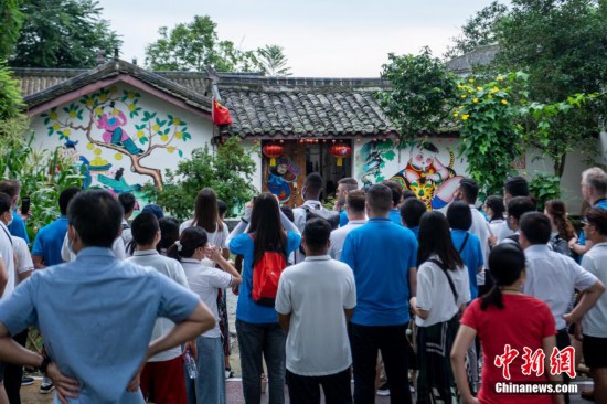 圖為外籍師生在綿竹年畫村了解情況。 劉忠俊 攝