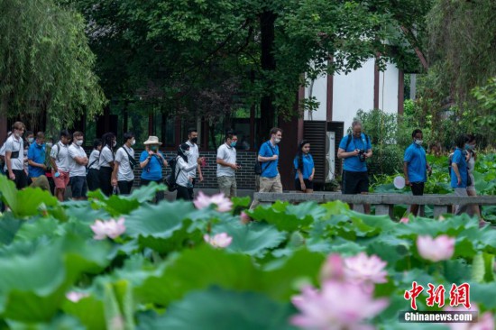 圖為外籍師生走進綿竹年畫村。 劉忠俊 攝