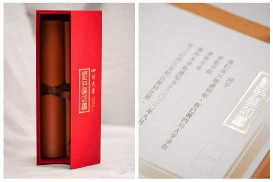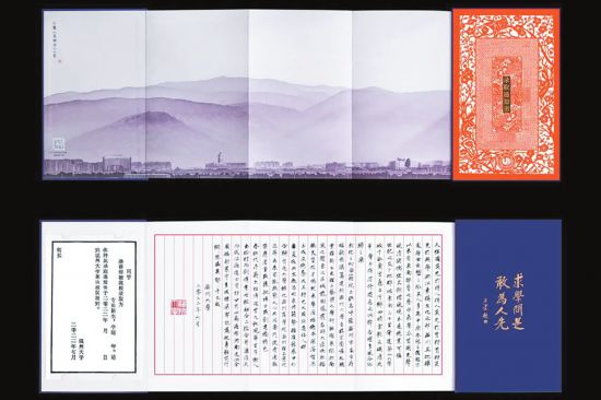 通知書在色彩上進行區分,本科生錄取通知書為紅色,象征熱情與活力,碩士錄取通知書為銀色,象征智慧與創造。博士錄取通知書為金色,象征經典與思索。