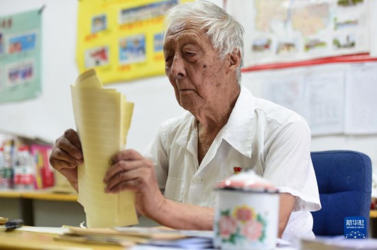 7月21日,葉連平在“留守未成年人之家”教室里為孩子們準備上課用的稿紙。