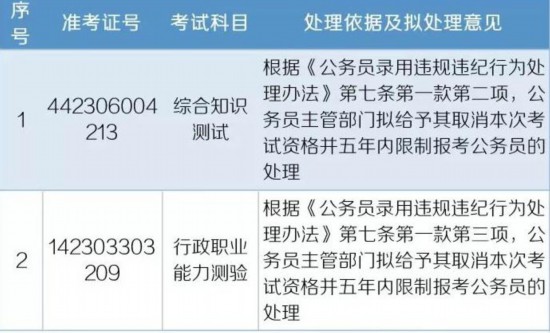 這其中,73名考生存在違規違紀行為或被認定為雷同答卷考生,擬給予其“當次該科目考試成績為零分的處理”;2名考生被認定違規違紀,擬給予其取消本次考試資格并五年內限制報考公務員的處理。