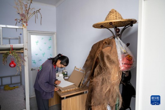 7月26日,在河北省承德市隆化縣張三營鎮東風村,宮希希在駐地宿舍整理自己制作的植物標本。