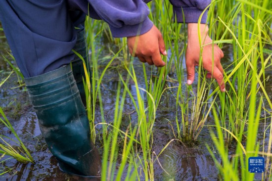 7月25日,在河北省承德市隆化縣張三營鎮東風村,宮希希在田間除草。